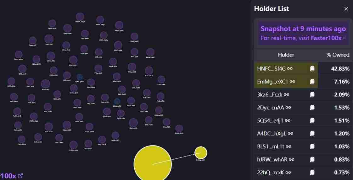 - 代币分配集中: 前几大地址持有超过 50% 的代币,价格波动风险较高。