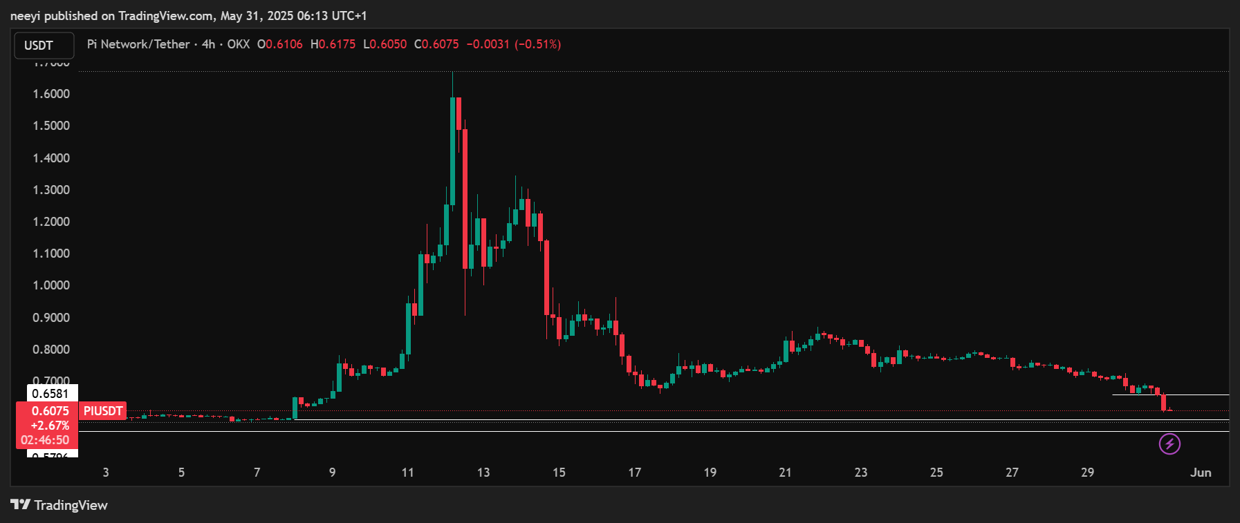 PI硬币价格预测今天(5月30日) pi币今日再次呈现红色蜡烛形态。若pi币收盘价依旧为红色,则意味着它已连续六天呈现下跌趋势。 Pi币价格在周三进一步下滑,比特币的持续弱势加剧了这一走势,这可能预示着Pi币短期内仍有下行空间。 昨日的看跌预测基本符合预期。我们曾指出,一旦跌破关键的0.66美元支撑位,将引发更大的抛压,事实确实如此。...