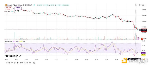当地时间周五凌晨,以色列与伊朗之间的地缘政治冲突骤然升级。根据TradingView数据显示,在以色列对德黑兰发动空袭后,比特币价格在早盘交易中下跌5%,一度跌至102,900美元。与此同时,受避险需求推动,现货黄金价格飙升至3,429美元,创下新高。