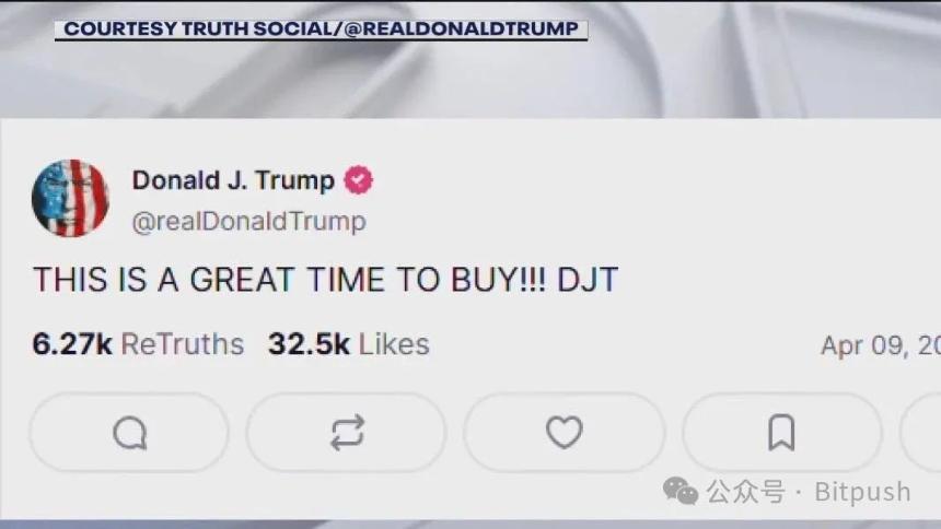 更引发讨论的是特朗普本人的角色。作为公司的大股东(通过信托持有约1.14亿股),他曾在Truth Social上发文呼吁投资者“买入DJT”,随后公司股价应声上涨。这种模糊了总统身份与商业利益的举动,引发了关于市场操纵的争议。