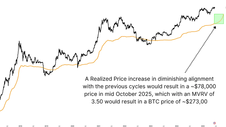 结合预计的7.8万美元实现价格和保守的3.5 MVRV目标,我们得出比特币潜在价格峰值为 27.3万美元。虽然这看似雄心勃勃,但历史上的抛物线式暴涨表明,这种走势可能在几周而非几个月内发生。尽管预计峰值更可能在15万至20万美元之间,但数学和链上证据表明更高估值至少是可能的。值得注意的是,这些模型会动态调整,若周期末期市场狂热加剧,预测可能迅速进一步加速。