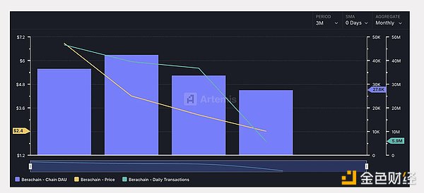 现实:尽管 PoL 机制创新,Berachain 正面临“空投后激励难以持续”的难题。其指标迅速下滑,表明其增长更多依赖代币奖励,而非真实使用需求。