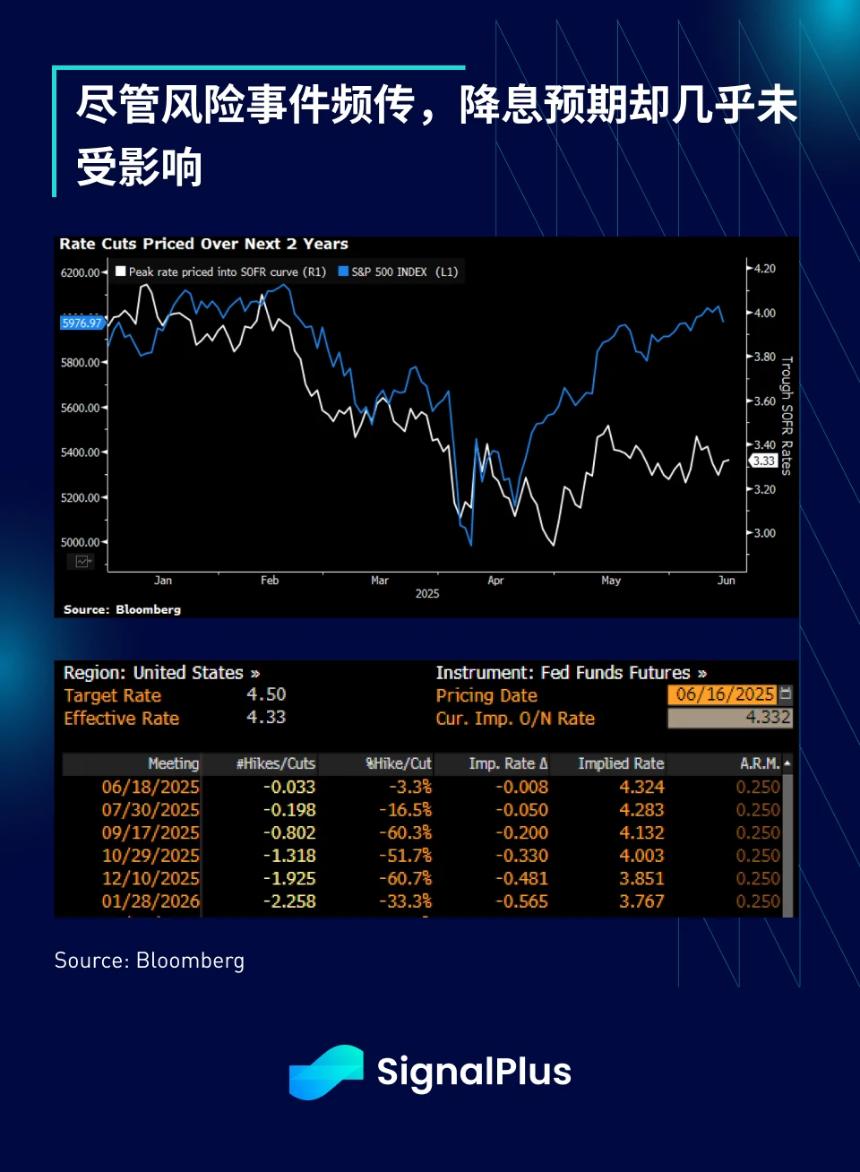 实际上,此次冲突几乎没有改变市场对2025年降息的预期。当前市场仍预计年底前仅会降息两次,即使通胀数据多次低于预期。