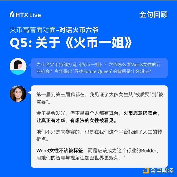 Q: 火币HTX为何持续打造《火币HTX一姐》?您如何看待Web3女性的行业机遇?今年提出“寻找Future Queen”的背后有何深意?