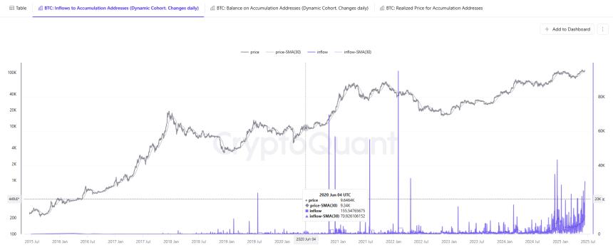 2025年比特币累积钱包迎来历史新高流入 币圈网报道: 近期数据显示,比特币持续流入持仓钱包,市场未出现大规模抛售或获利回吐的压力。值得注意的是,持有超过10个比特币的钱包买入量达到了今年迄今为止的最高水平。 尽管比特币价格在近期飙升,但累积地址的资金流入依然保持强劲势头。过去几天内,超过3万枚BTC被买走并转入这些极少转移资产的保守地址。...