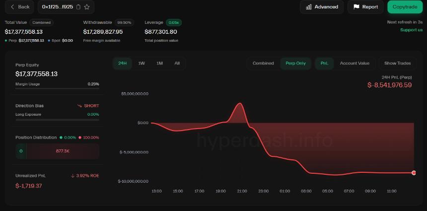 Hyperliquid 鲸鱼转为空头:加密市场巨鲸动态引发关注 币圈网报道: 一位备受瞩目的 Hyperliquid 巨鲸因多头仓位遭受重大损失,现已转为空头仓位。这位交易员被认为是加密领域经验最丰富的参与者之一,并以 20 倍杠杆开启了空头策略。 随着比特币价格的下跌,又一名 Hyperliquid 鲸鱼被迫退出多头仓位。这位名为 @aguilatrades ...
