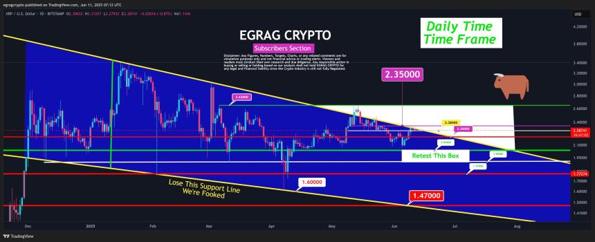 著名分析师预测 XRP 即将迎来突破,熊市或将结束 币圈网报道: 著名市场分析师 EGRAG Crypto 近日表示,XRP 或将很快突破长达数月的下跌楔形结构。 “滴答滴答,”他在最近的一次市场评论中说道,暗示空头的时间已经所剩无几。虽然这一表述不足以完全说明问题,但他附上的图表进一步证实了其观点。 XRP 在下降楔形内持续交易 值得注意的是,根据...