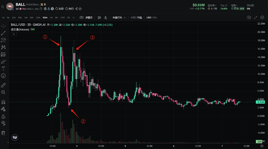 链上彩票BALL的12小时狂热:从暴涨到暴跌的情绪过山车 BALL爆火,但透明度引质疑 6月3日上午,Solana链上忽然爆出一个异动标的——Powerball(BALL)。 CA:BALLrveijbhu42QaS2XW1pRBYfMji73bGeYJghUvQs6y 这个主打“在链上抽彩票”的代币,以“每小时开奖”吸引了大量链上赌徒。GMGN行情显示,...
