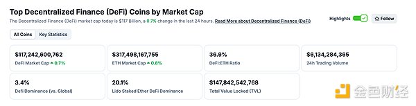 Ripple CEO澄清:从未寻求收购Circle DeFi数据 1.DeFi代币总市值:1172.42亿美元 DeFi总市值 数据来源:coingecko 2.过去24小时去中心化交易所的交易量61.34亿美元 过去24小时去中心化交易所的交易量 数据来源:coingecko 3.DeFi中锁定资产:1136.1亿美元 DeFi项目锁定资产前十排名...