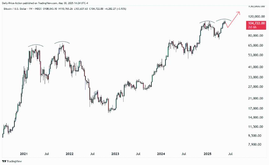 比特币或将在6月中旬突破12万美元,分析师建议在10.4万美元附近布局多头 币圈网报道: 比特币在创下接近11.2万美元的历史新高后,进入了一轮回调阶段,市值一度下跌超过7%。然而,尽管市场情绪暂时低迷,著名加密货币分析师KillaXBT预测,这一领先的加密货币将很快重拾牛市趋势,并再度进入价格发现区间。 分析师:比特币交易员应在10.4万美元附近做多 5月30日,Kill...