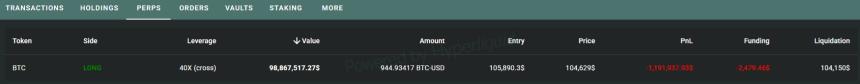 高风险交易员 James Wynn 再次开设 1 亿美元杠杆头寸,引发市场关注 币圈网报道: 知名高风险杠杆交易员 James Wynn 在去中心化交易平台 Hyperliquid 上再次以 40 倍杠杆开设了价值 1 亿美元的多头头寸。此前他曾试图通过做多 BTC 锁定 10 亿美元收益,但因价格波动面临清算威胁。 此次 James Wynn 的强平价格为 104,580 美...