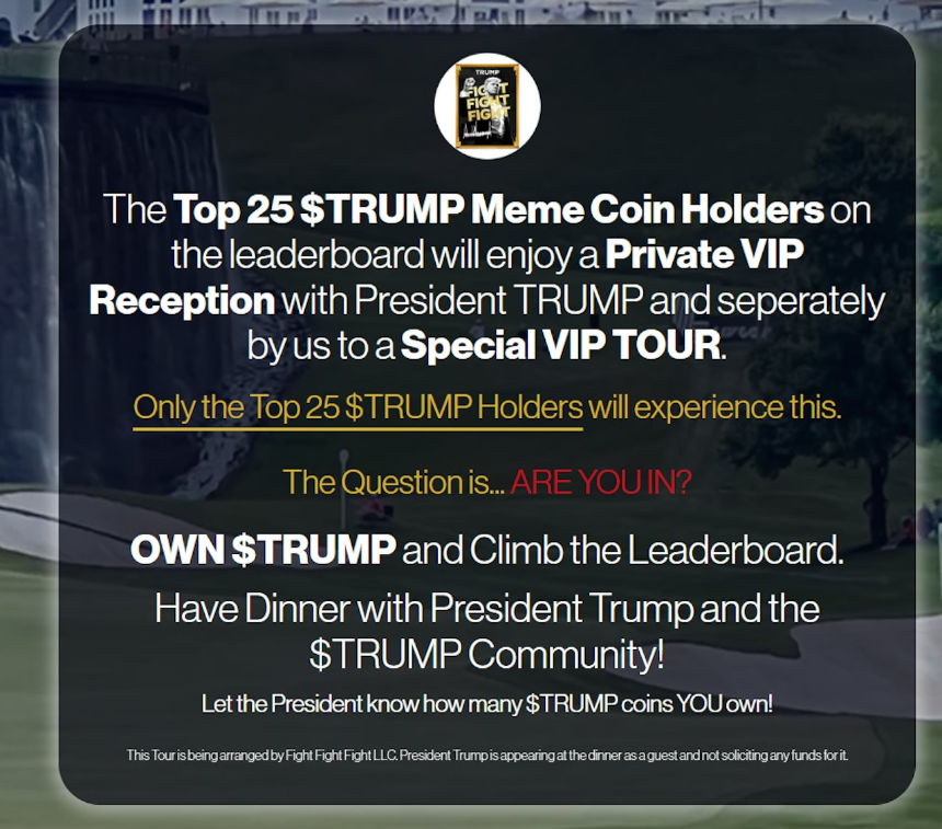 特朗普加密晚宴:奢华菜品与政治风波并存 当地时间2025年5月22日晚,220名加密货币投资者齐聚波托马克河畔的高尔夫俱乐部,与美国前总统特朗普共进丰盛晚宴。这场晚宴由持有特朗普官方发行的meme币$TRUMP作为入场券,吸引了包括Justin Sun、Ronin Network联合创始人Jihoz.ron、Magic Eden联创兼CE...