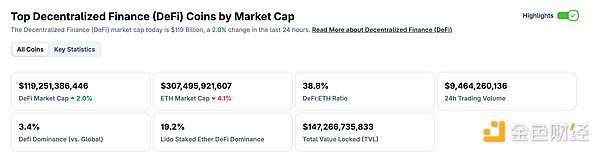 Aptos声明未受Sui网络Cetus事件影响,DeFi与NFT市场数据持续更新 DeFi数据 1.DeFi代币总市值:1192.51亿美元 DeFi总市值 数据来源:coingecko 2.过去24小时去中心化交易所的交易量94.64亿美元 过去24小时去中心化交易所的交易量 数据来源:coingecko 3.DeFi中锁定资产:1213.59亿美元 DeFi项目锁定资产前十排...