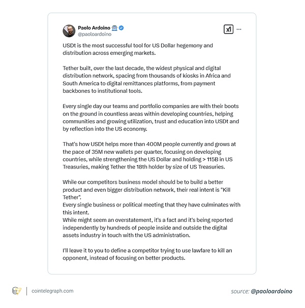 Tether抵制欧盟MiCA法规的深层原因:稳定币巨头为何选择不合规? 原文标题:《Why Tether refuses to comply with MiCA》 撰文:Bradley Peak,Cointelegraph 专栏作者 编译:J1N,Techub News Tether 是否符合 MiCA 要求? 欧盟新出台的加密资产市场法规(MiCA)是全球经济强国首次...