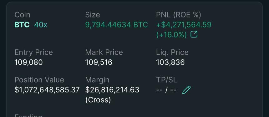 比特币巨鲸 James Wynn 在 Hyperliquid 平台将 40 倍多头仓位扩大至 10.7 亿美元 摘要 詹姆斯·韦恩 (James Wynn) 是一位匿名加密货币交易员,以在链上进行大规模交易而闻名,他利用 40 倍杠杆将其比特币多头仓位扩大至 10.7 亿美元 。 币圈网报道: 詹姆斯·韦恩 (James Wynn),一位匿名加密货币交易员,以大规模链上交易闻名,近日在去中心化衍生品平台 Hy...