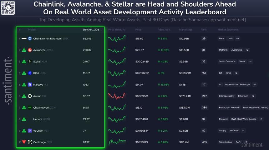 Santiment报告:Chainlink在去中心化预言机领域持续引领开发活动 摘要 分析公司 Santiment 表示,就开发活动而言,去中心化预言机网络 Chainlink (LINK) 继续在加密货币的现实世界资产 (RWA) 领域占据主导地位 。 币圈网报道: 根据分析公司 Santiment 的数据,去中心化预言机网络 Chainlink 在加密货币的现实世界资产(R...