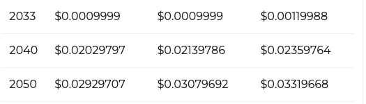 根据 Changelly 的数据,SHIB 将在 2050 年后的某个时候达到 0.3073 美元的大关。该平台预计该资产在 2050 年的最高交易价格将达到 0.03319668 美元。