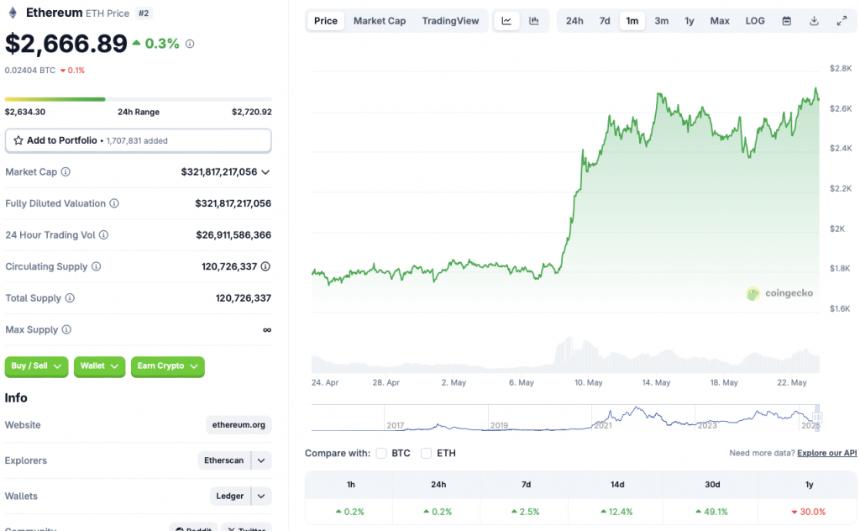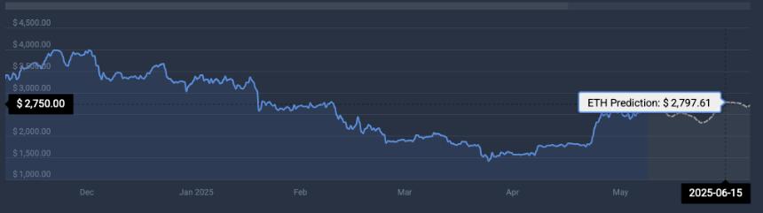根据CoinCodex分析师的预测,ETH短期内不太可能突破3000美元大关。该平台预计,到6月15日,ETH的价格将达到2797.61美元。若ETH触及这一目标价位,则意味着其价格将上涨约5%。