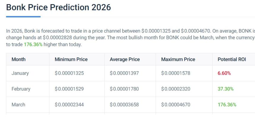 BONK:预测显示 2026 年第一季度将增长 176%