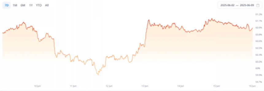 CoinW研究院周报(2025.6.9-2025.6.15期) 关键要点 ● 全球加密货币总市值为 3.41 万亿美元,较上周 3.42 万亿美元,本周内加密货币总市值跌幅为 1% 。截止至发稿,美国比特币现货 ETF 累计总净流入约 456.1 亿美元,本周净流入 10.7 亿美元;美国以太坊现货 ETF 累计总净流入约 38.5 亿美元,本周净流入 5.28...