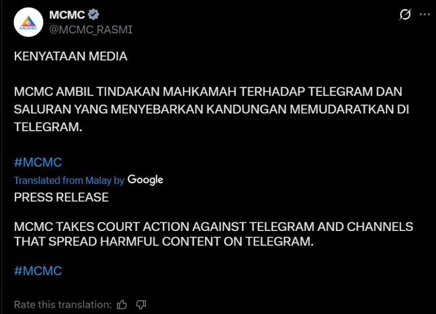 Telegram因传播违规内容在马来西亚法院受审 币圈网报道: 马来西亚通讯与多媒体委员会 (MCMC) 指控 Telegram 允许传播违反国家法律的内容,因此该平台再次被告上法庭。 根据马来西亚通信监管机构周四发布的最新消息,他们已获得针对该消息服务以及两个在其平台上违规的频道的临时法庭命令。 马来西亚通讯及多媒体委员会指控Telegram允许...