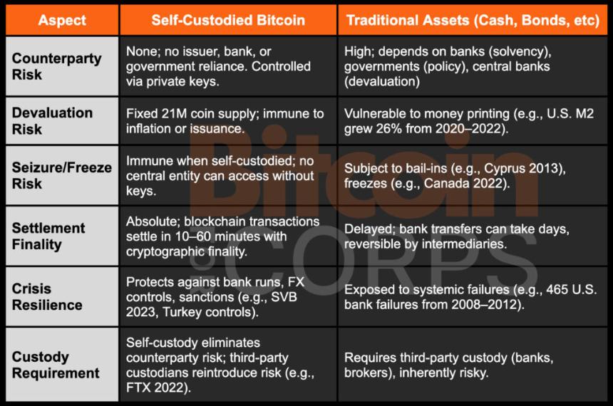 比特币如何降低企业财务战略中的交易对手风险 币圈网报道: 比特币为企业提供了罕见的持有纯资本的能力——一种无需发行人、无需交易对手、也无需依赖金融中介机构的资产。然而,这些优势只有通过自主托管才能充分实现,因为第三方托管机构会重新引入交易对手风险。在系统性风险不断上升的时代,自主托管的比特币是降低企业资金风险的战略资产。 国库储备中看不见的交...