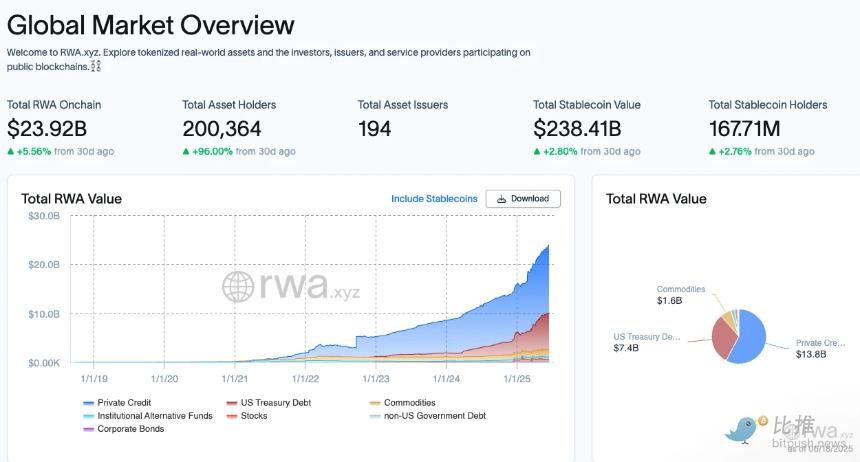 贝莱德与摩根大通加速布局,2025年RWA全赛道深度解析 原文作者:BitpushNews 今年以来,现实世界资产(RWA)代币化已成为不可逆的趋势。从Kraken计划推出代币化股票,到Coinbase拟将其自身股票上链;从贝莱德、摩根大通等传统金融巨头的积极参与,到头部DeFi协议将RWA纳入抵押品框架——代币化正在彻底重塑资产的流动性与可及性。 尽管面...