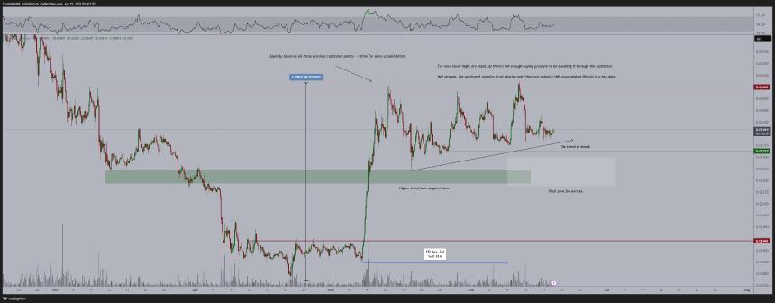 这是一个相当强烈的信号,表明以太坊在这些水平上盘整,并且在比特币盘整时没有出现明显波动。这表明市场情绪和动能正在转向以太坊和其他山寨币。