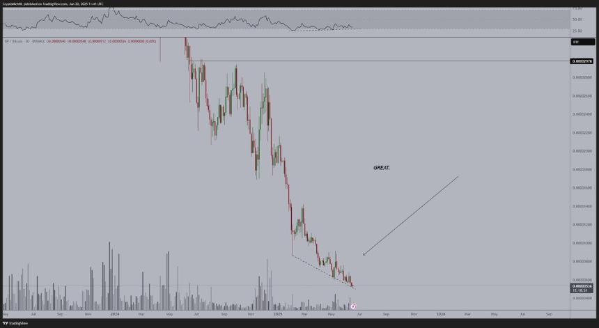 当价格呈现横盘走势或创下更低低点,而相对强弱指数 (RSI) 等指标形成更高低点时,就会出现看涨背离。Van de Poppe 指出,OP 的看涨背离可能预示着该山寨币“可能很快逆转”对比特币的走势。