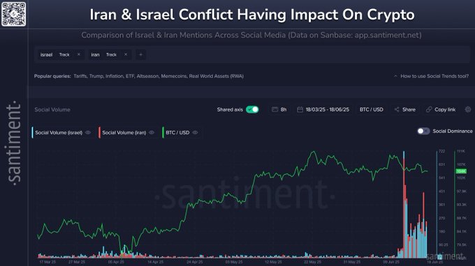 此外,Santiment 提到,涉及以色列和伊朗的中东冲突“可能会继续导致加密货币市场价格波动且难以预测”。
