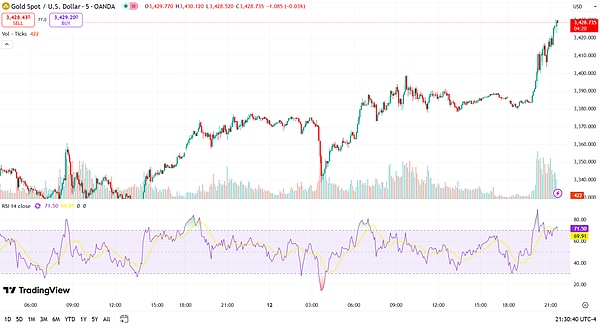 与此同时,现货黄金则因避险而飙升至 3,429 美元,而美国期货价格则因投资者担忧更广泛的地区冲突风险而走低。
