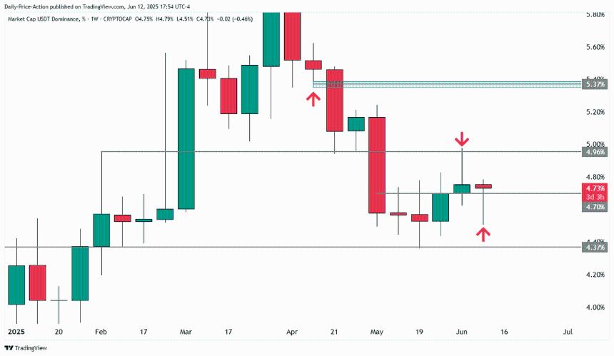 此外,分析师还警告称,USDT 主导图表(USDT.D)可能开始对比特币发出看跌信号。