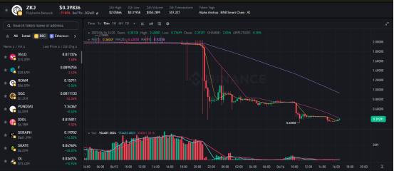 作为币安Alpha上线以来最具代表性的案例之一,ZKJ和KOGE曾是该平台最受欢迎的交易对,日交易量一度占据总交易量的85.10%。然而,在6月15日晚的一场大规模撤池与抛售操作中,这两个代币瞬间崩盘,市值蒸发近八成。