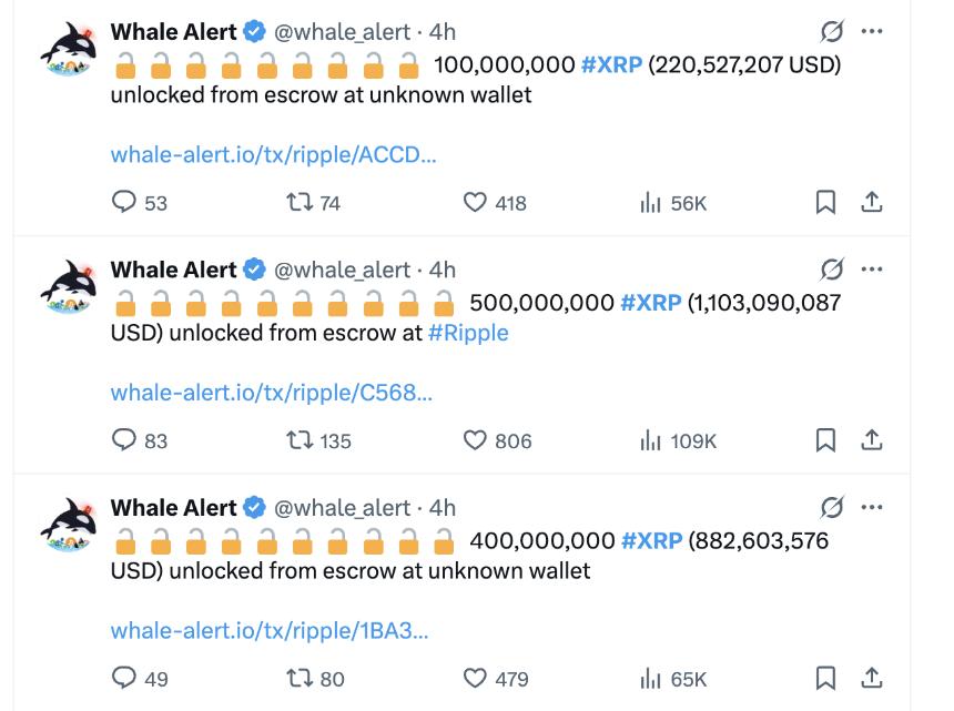 Ripple 6月解锁22亿美元XRP,同时锁定6.7亿XRP进入托管 币圈网报道: 总部位于旧金山的金融科技巨头 Ripple 在6月从其托管账户中解锁了价值超过22亿美元的XRP。 作为每月例行活动的一部分,Ripple从托管账户释放了10亿枚XRP代币用于2025年6月发行。在发行时,这些代币的总价值约为22.1亿美元。 交易详情 加密货币追踪服务Whale Al...