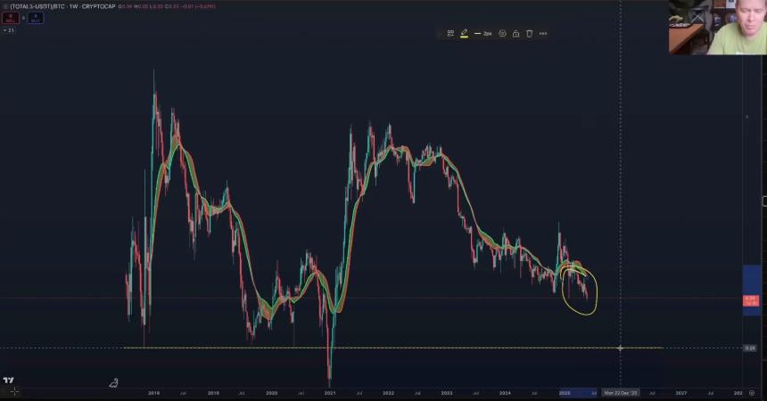 分析师本杰明·考恩警告:山寨币相对于比特币的大幅下跌只是时间问题 币圈网报道: 知名加密货币分析师本杰明·考恩 (Benjamin Cowen) 近日发出警告,称山寨币可能会在比特币主导市场的情况下出现大幅下跌,而这一趋势可能随时显现。 在最近的一次战略分析会议上,Cowen 向其 YouTube 上超过 90 万的订阅者表示,TOTAL 3 图表(追踪除比特币、...