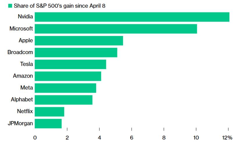 大型科技股重拾市场主导地位,引领标普500指数反弹 币圈网报道: 4月初,大型科技股曾将标准普尔500指数推向熊市边缘,但如今它们正推动该指数实现强劲反弹。 上周,尽管美国政府继续限制英伟达向中国出口其最先进的芯片,但该公司仍为投资者描绘了乐观的销售前景。彭博社报道称,英伟达与微软的股价均接近历史高点,这进一步增强了交易员对科技股将继续推动整个市场上...