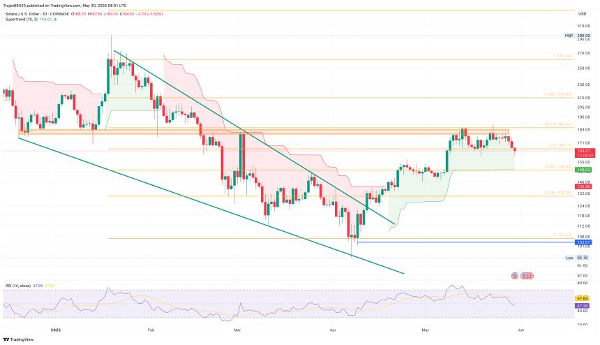 Solana跌破163美元关键支撑,下行目标或指向150美元 币圈网报道: Solana价格已跌破163美元,失守关键斐波那契支撑位。随着网络活动放缓和多头清算增加,市场看跌情绪持续升温。 在比特币价格下跌的背景下,Solana难以维持其看涨势头。SOL代币当前交易价为163美元,回调幅度超过2%,并可能进一步延续看跌趋势。 Solana价格分析 近期Sola...