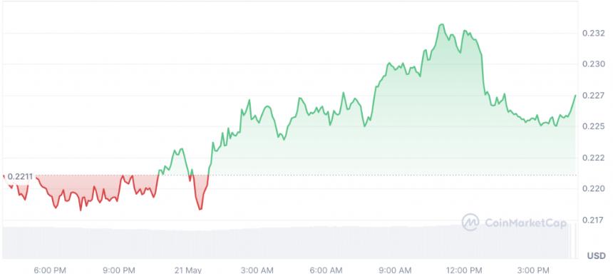与市场其他部分类似,狗狗币的价格在过去24小时内稳步上涨。该资产从0.218美元的低点攀升至0.2335美元的高点。截至本文撰写时,该表情包币的交易价格为0.2274美元。此前,狗狗币的单日涨幅高达3.72%。尽管过去七天略有回落,但狗狗币在过去一个月内仍成功上涨超过40%。