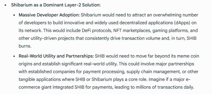 Shiba Inu 需要减少其流通供应量,才能使 SHIB 突破 0.01 美元的价格路径。SHIB 目前拥有数万亿枚代币;该代币需要适应激烈的销毁机制,以平衡代币供应。Shibarium 可以在此过程中提供巨大帮助,因为 Layer 2 链拥有其自身精细的销毁机制。Shibarium 会销毁网络上一小部分交易费用来销毁 SHIB。为了减少 SHIB 的流通供应量,Shibarium 需要积极销毁代币,才能使 SHIB 的价值在不久的将来大幅上涨。