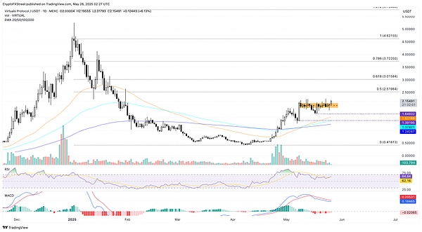 Virtuals Protocol (VIRTUAL) 上涨超过 6%,即将突破盘整区间,目标价指向 2.50 美元。