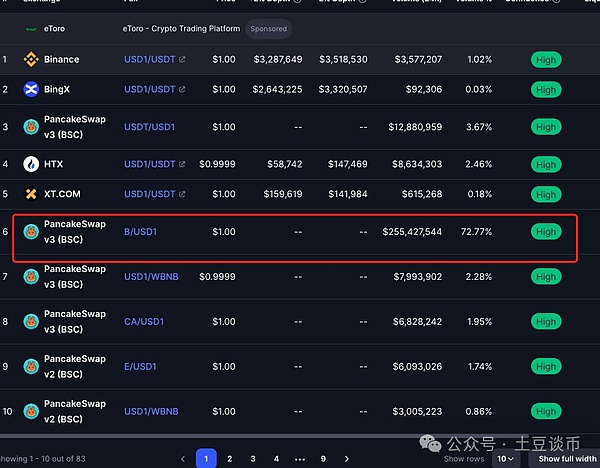 再看$USD1的交易对分布,好家伙,$B依然占据大半壁江山,抛开稳定币对,基本呈现垄断态势。