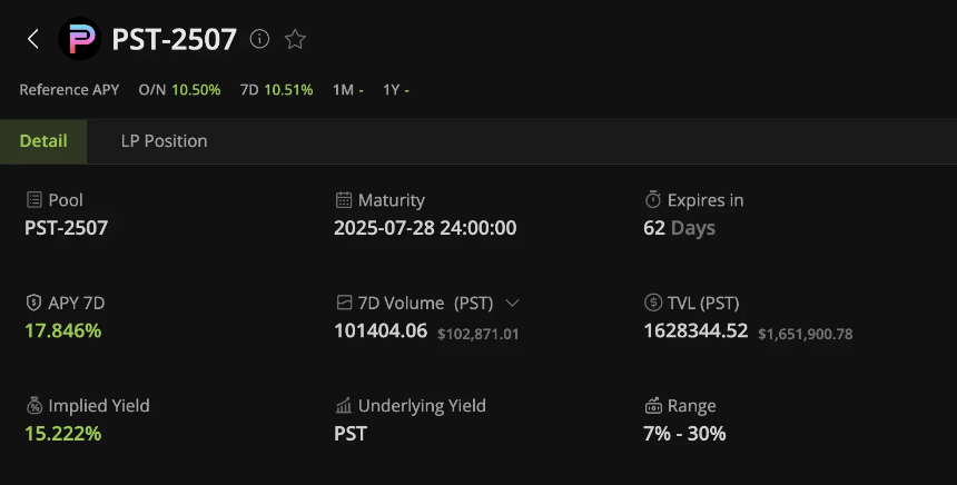 相较于直接在 Huma 协议内存款,个人当下会更推荐在 RateX(Solana 版本的 Pendle,传送门:https://app.rate-x.io)参与 PST(即在 Huma 存入稳定币后获得的生息存款凭证)的 LP,除了可吃到更高的 APY 收益外(暂时报 17.846% :分为 13.913% 基础收益 + 3.932% 积分预估收益),可获得 2 倍的 Huma 积分加成,以及 3 倍的 RateX 积分加成。