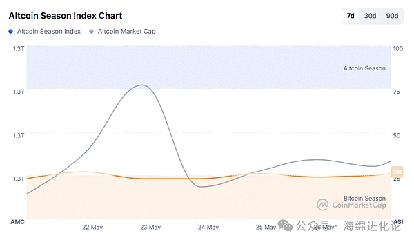 当该指数处于低位(如目前的 26)时,意味着流入山寨币市场的流动性减少,而更多资金流入比特币。这种转变解释了为什么比特币价格持续保持在 10 万美元以上。