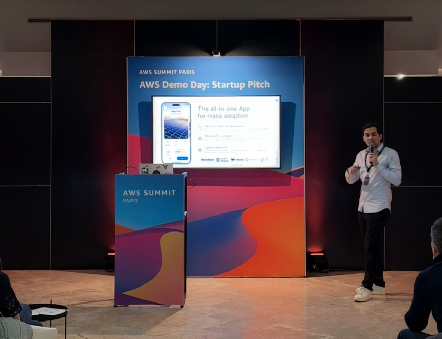 Paul Antoine Arrighi 在 AWS Demo Day 展示 Collaterize 的 App