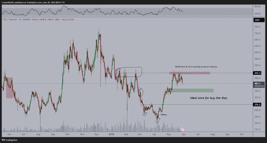 TAO 看起来很棒,因为它正在挑战最后的阻力位。理想情况下,低于 400 美元的价位对 TAO 来说很划算,即使跌破该价位,我们仍会继续看涨。它是我投资组合中唯一一个表现良好的股票,我认为很快就会涨到 700-800 美元。