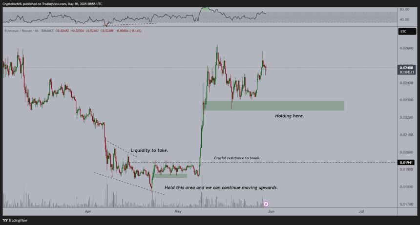 ETH 在 4 月和 5 月经历了强劲上涨,并重新测试了 0.023 BTC 的 OB(订单区块)并保持在该水平。这意味着我们即将测试高点并继续上涨。