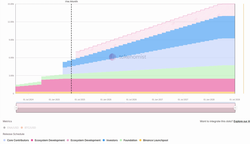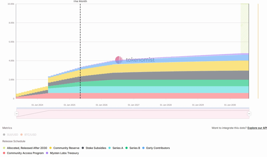 本周代币解锁中,ENA的解锁比例相对较高,其余代币解锁比例均低于2%。其中,SUI代币解锁金额高达1.5亿美元,成为本周焦点。