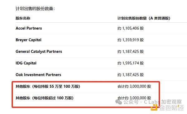 根据最新的招股说明书,Circle 和现有股东将合计发行 3,200 万股 A 类普通股,其中 1,920 万股(占比 60%)由现有股东出售,剩余 1,280 万股(占比 40%)由公司新发行。