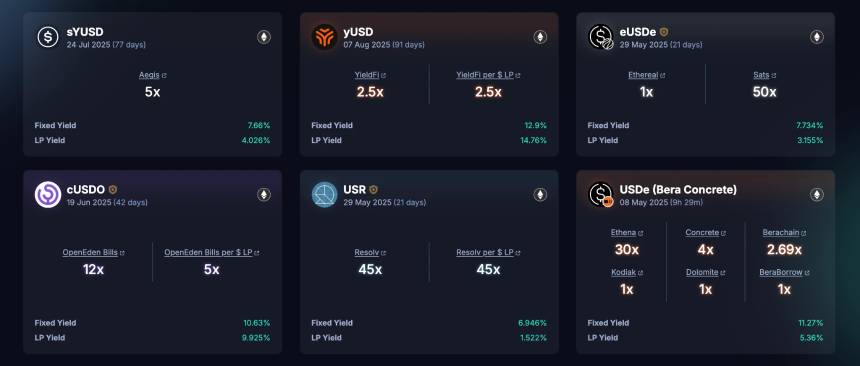 Pendle是一个专注于收益代币化的DeFi协议,允许用户将收益资产拆分为PT和YT两种代币,并在其平台上进行交易。它通过对利率本身构建交易市场,为稳定币背后的收益策略提供对冲手段,从而形成固定利率。