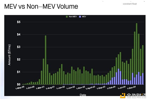 - 所谓的3.1万亿美元年交易量极具误导性,其中31%源于MEV机器人通过高频循环操作贡献,真正由人类实际参与的交易量远低于表面数据。